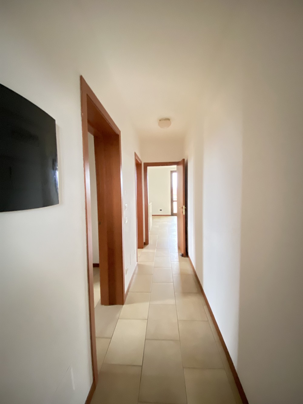 L’ingresso introduce ad una zona giorno ampia e luminosa, armoniosamente collegata alla cucina, con accesso diretto al balcone, ideale per momenti di relax. La zona notte, ben distribuita, ospita due camere matrimoniali, una camera singola e un bagno con antibagno, quest’ultimo predisposto come pratica area lavanderia.