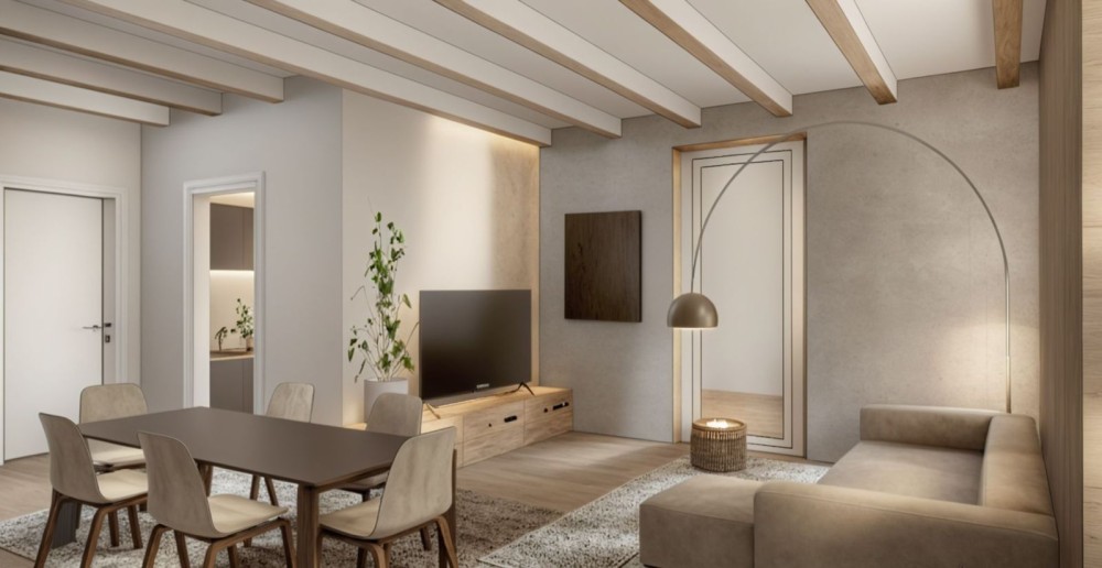L’appartamento si caratterizza per le travi in legno a vista che donano calore e personalità agli ambienti ed è stato realizzato con grande attenzione all’efficienza energetica grazie al cappotto termico, agli infissi di nuova generazione ed al portoncino d’ingresso blindato che garantisce sicurezza e isolamento.